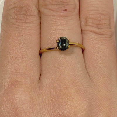 A captivating gem just under one carat, this Tanzanian sapphire exhibits a rich transformation โ shifting from deep forest green under fluorescent light to an elegant violet-grey under incandescent light. Its oval cut enhances the natural depth and duality of color, making it a refined choice for connoisseurs and collectors alike. This gem brings subtle drama and sophistication to any custom jewellery design.