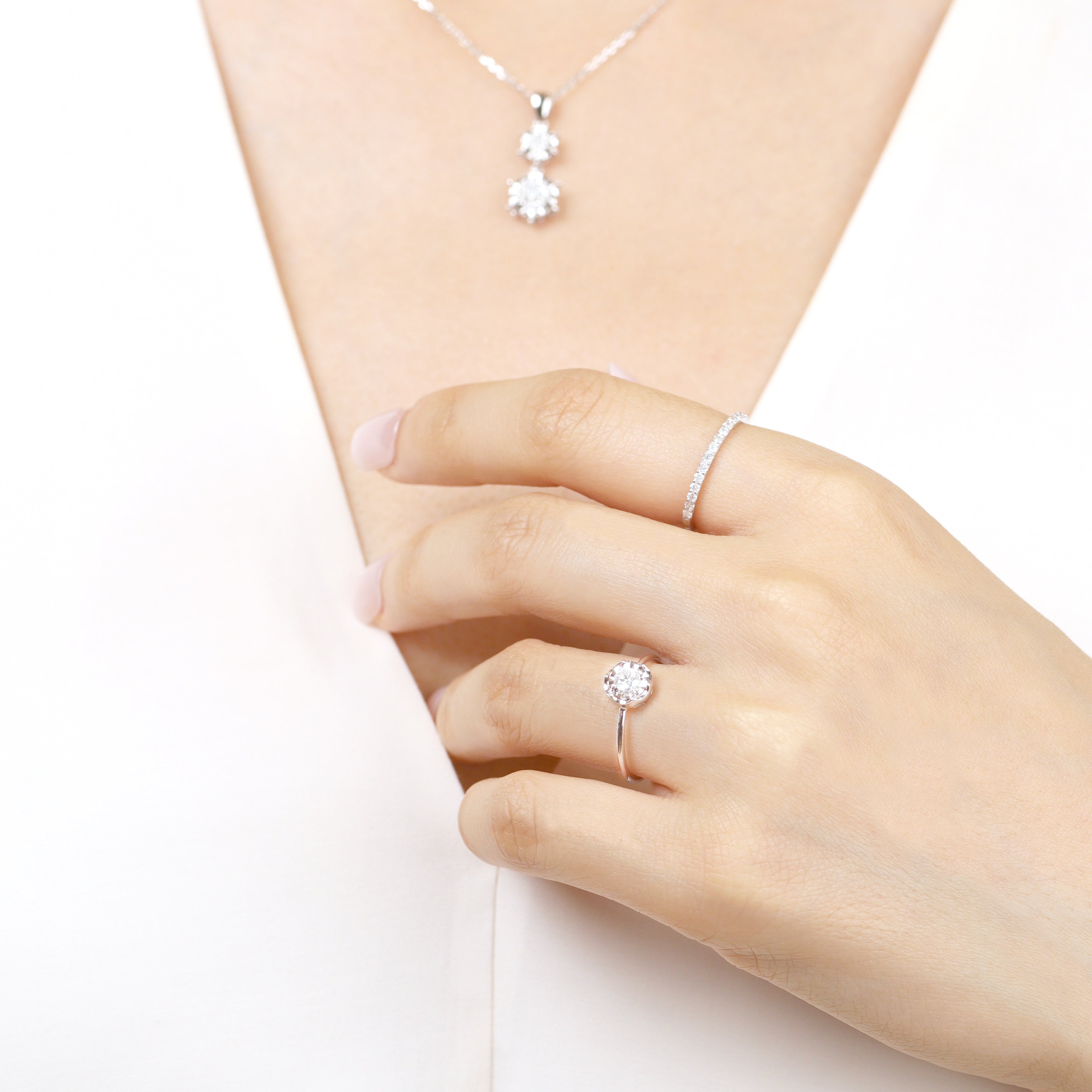 The term "Total Carat Weight" pertains to the collective carat weight of multiple diamonds, taking into account a US ring size 7 as the reference. It's important to note that the Total carat weight may vary based on the specific ring size chosen.