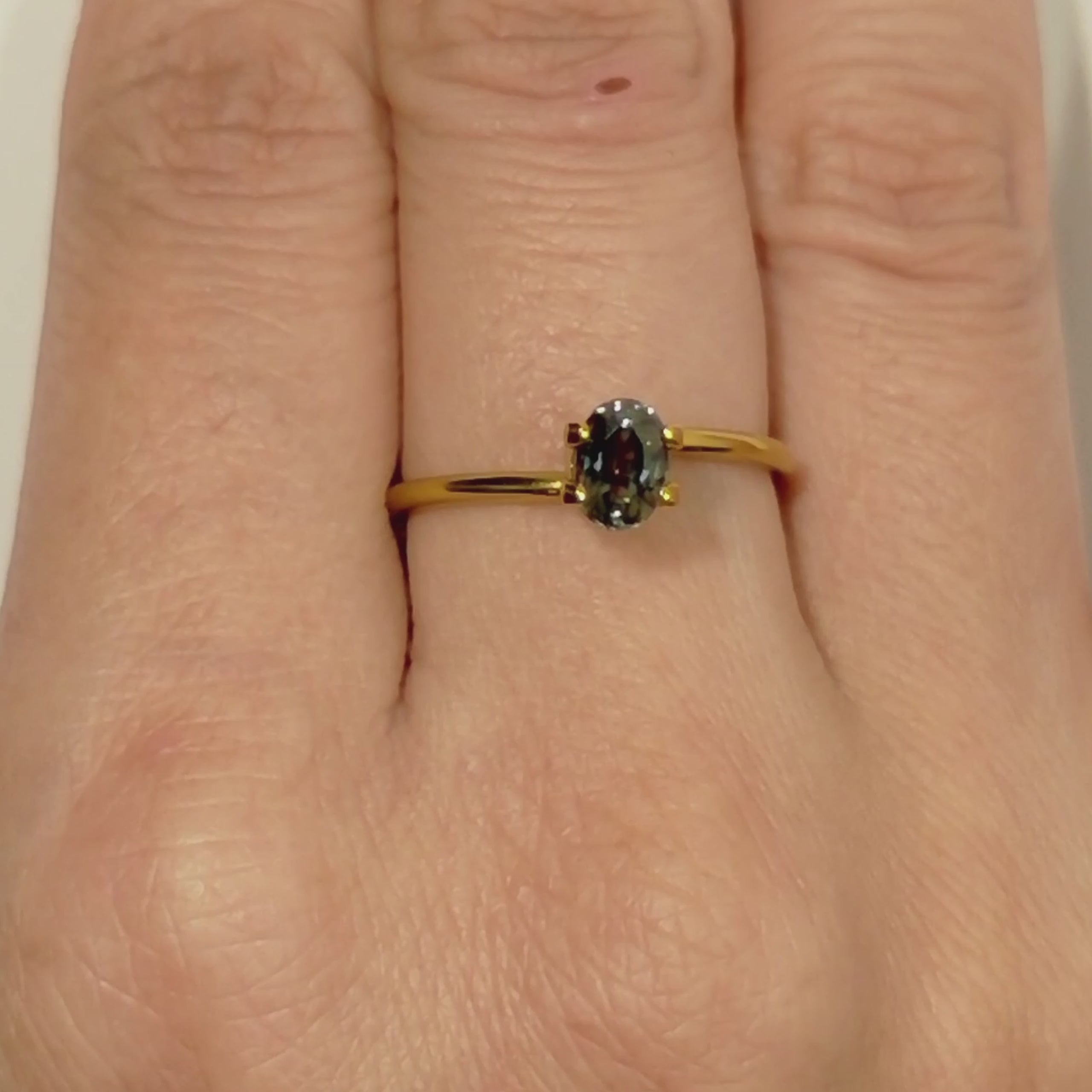 This petite yet enchanting 0.92 carat oval sapphire exhibits a remarkable color shift โ transitioning from a cool, silvery green under fluorescent light to a soft lavender under incandescent lighting. Expertly faceted for brilliance and clarity, this gem offers a delicate and refined presence with a magical dual-tone personality. Sourced from Tanzania, this color change sapphire is ideal for those seeking an elegant, conversation-starting centre stone for a ring or pendant with a unique twist.