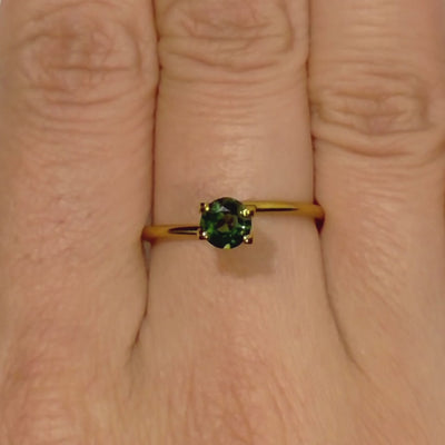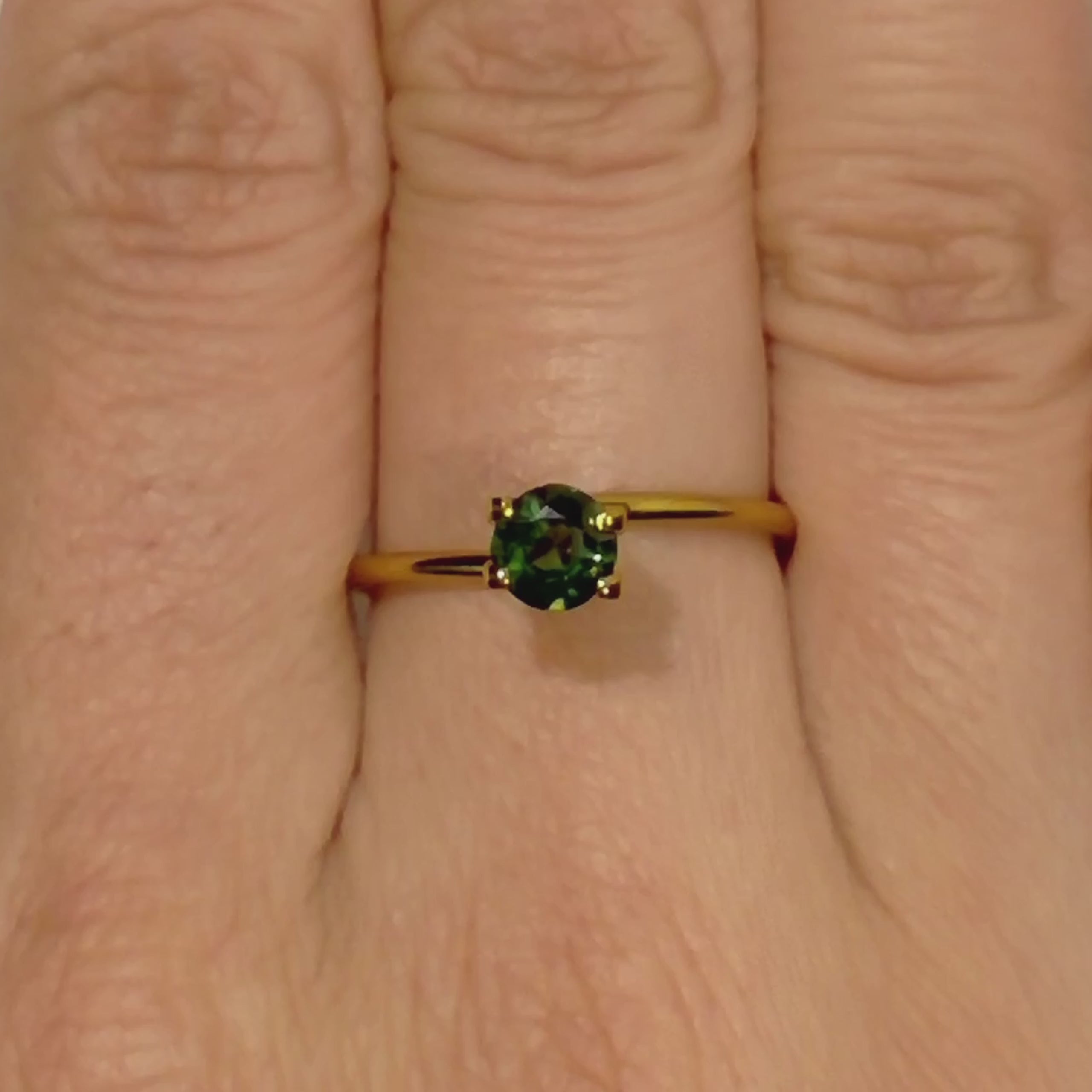 From the heart of Australia, this 0.58-carat round brilliant Parti-Color Sapphire captivates with its intriguing blend of deep forest green and shadowy teal. Each angle reveals a different intensity of color, making it a beautiful choice for a bespoke piece of jewellery. Ethically sourced and untreated, this natural sapphire embodies individuality and timeless elegance. Whether paired with diamonds or worn on its own, it makes a statement of subtle sophistication and rare natural charm.