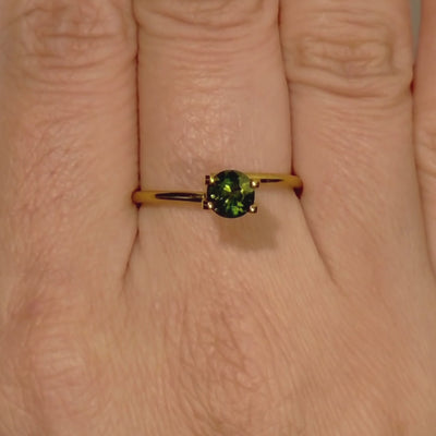 A beautiful 0.90 carat Australian green sapphire, showcasing earthy olive-green hues with a lively internal shimmer. This round gemstone offers a natural elegance that complements both classic and contemporary jewellery designs. Responsibly sourced from Australia, its rich tones evoke a sense of grounded luxury. Ideal for a bespoke engagement ring, pendant, or stacking ring, this sapphire is a timeless choice for lovers of understated colour and organic beauty.