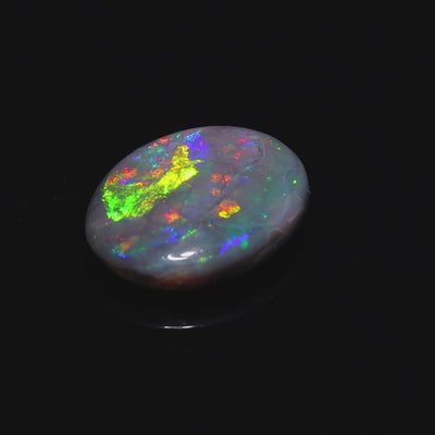 This remarkable 5.24-carat Black Opal from Lightning Ridge, Australia, is a dazzling display of nature's artistry. Its deep, dark body tone serves as the perfect backdrop for a vibrant rainbow spectrum of colors, with fiery reds, golden yellows, electric greens, and vivid blues shimmering across its surface.