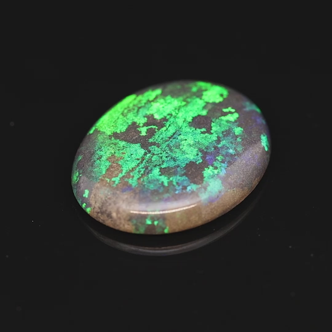 The opal's earthy matrix base provides a striking contrast, emphasizing the radiant tones and enhancing its natural allure. This gem is a perfect choice for collectors who appreciate rare and unique opals or for those seeking to design a one-of-a-kind jewelry piece that showcases its breathtaking play of color.
