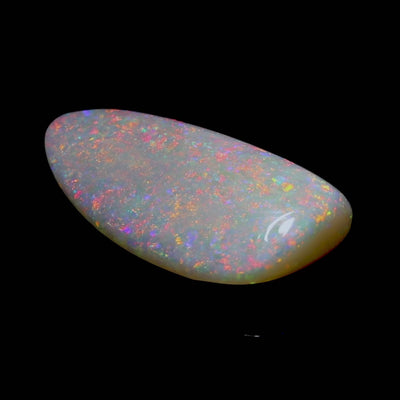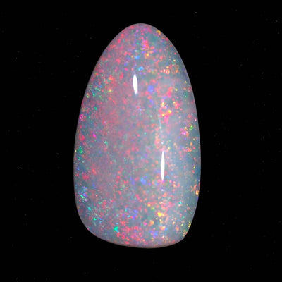 This magnificent 22.19-carat opal from Lightning Ridge, Australia, is an extraordinary example of a rare pinfire solid crystal opal. Renowned for its exquisite play-of-color, the gem radiates vibrant shades of red, green, blue, and purple, creating a mesmerizing effect. The gemstone's smooth surface enhances its natural beauty, while its substantial size makes it a standout piece among even the most distinguished collections.
