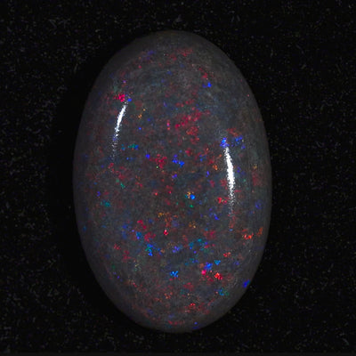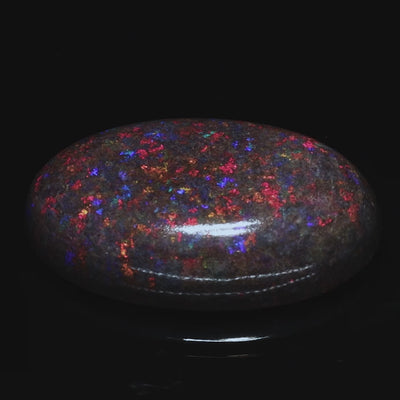 This opal from Andamooka, weighing 34.11 carats, is a striking gemstone that epitomizes the beauty of natural opals. Its vivid play-of-color spans the full rainbow spectrum, with fiery reds, lush greens, deep blues, and vibrant purples scattered across its polished surface.