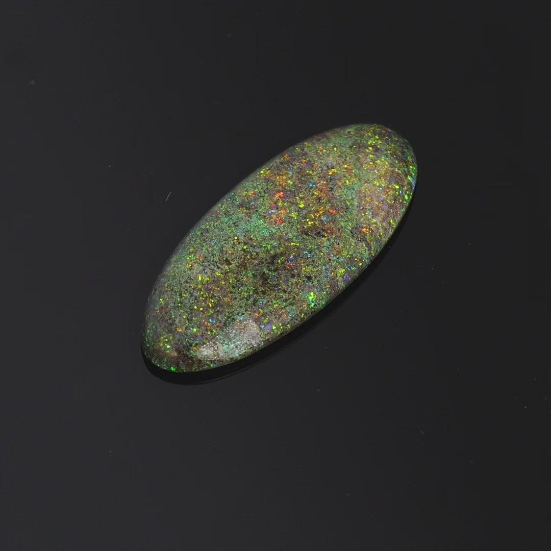This exquisite 5.3-carat Andamooka opal radiates a dazzling pinfire pattern with a vibrant play of green, orange, gold, and red hues. Sourced from the renowned opal fields of Andamooka, this opal captivates with its striking brilliance and lively spectrum. Perfect for custom jewelry or as a standalone gem for collectors, its dynamic colors create a mesmerizing effect. Whether set in a ring, pendant, or earrings, this opal is a testament to nature's artistry, embodying sophistication and charm.