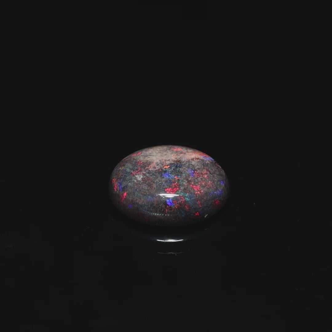This 4.72-carat Andamooka opal is a splendid example of the vibrant rainbow spectrum found in high-quality opals from the region. Its surface showcases an interplay of fiery reds, electric blues, and radiant greens, complemented by softer pastel flashes that shift with every angle.