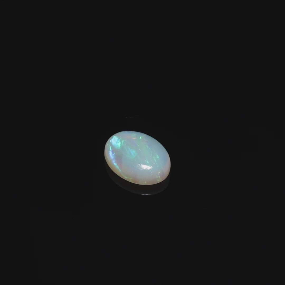 This exquisite 1.6-carat opal originates from Coober Pedy, Australia, the world-renowned source of high-quality opals. It radiates a beautiful play-of-color, featuring a vibrant spectrum of orange, yellow, green, blue, and violet hues. The smooth, polished cabochon cut enhances its lustrous and iridescent display, capturing light from every angle.