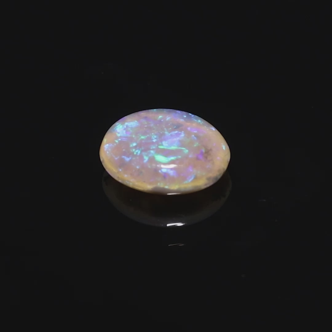 Carved into a smooth oval form, this black opal features an enchanting depth of color, brought to life by its dark base tone, which enhances the vibrancy and richness of its hues. The interplay of luminous greens, serene blues, and subtle violet tones gives this gemstone a truly magical allure.