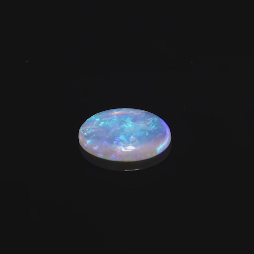 The opal's highly polished cabochon cut accentuates its translucent beauty, creating a glowing effect that highlights the vivid interplay of colors. Perfectly suited for delicate jewelry pieces, this gem is ideal for a custom pendant, ring, or earring set that will captivate admirers.