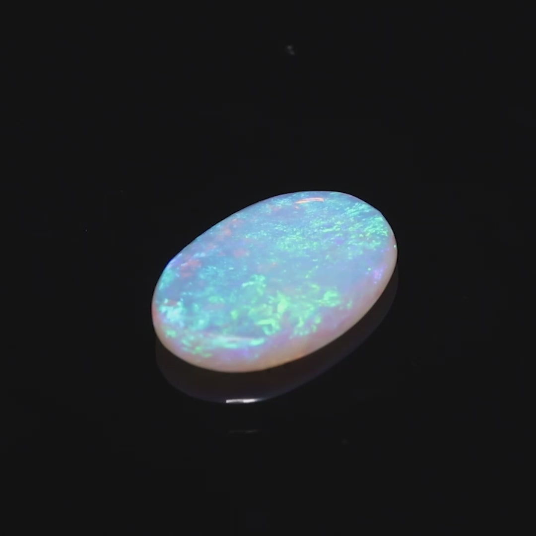 Introducing a stunning 2.45 Ct Crystal Black Opal, sourced from the world-renowned Lightning Ridge in Australia. This opal boasts a mesmerizing full-spectrum rainbow play-of-color, shimmering across its translucent body. Its ethereal flashes of blue, green, yellow, and violet create a celestial effect, perfect for collectors and jewelry enthusiasts alike.