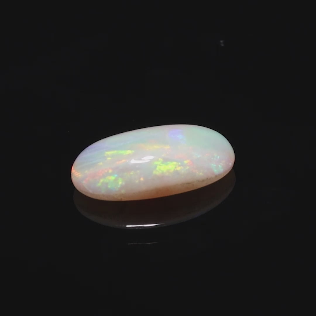 This 2.6 Ct Rainbow Opal hails from the legendary Andamooka opal fields of Australia, known for producing some of the world's most captivating opals. This gemstone displays a mesmerizing spectrum of colors, including fiery reds, vibrant yellows, electric greens, and calming blues that dance across its smooth, polished surface.