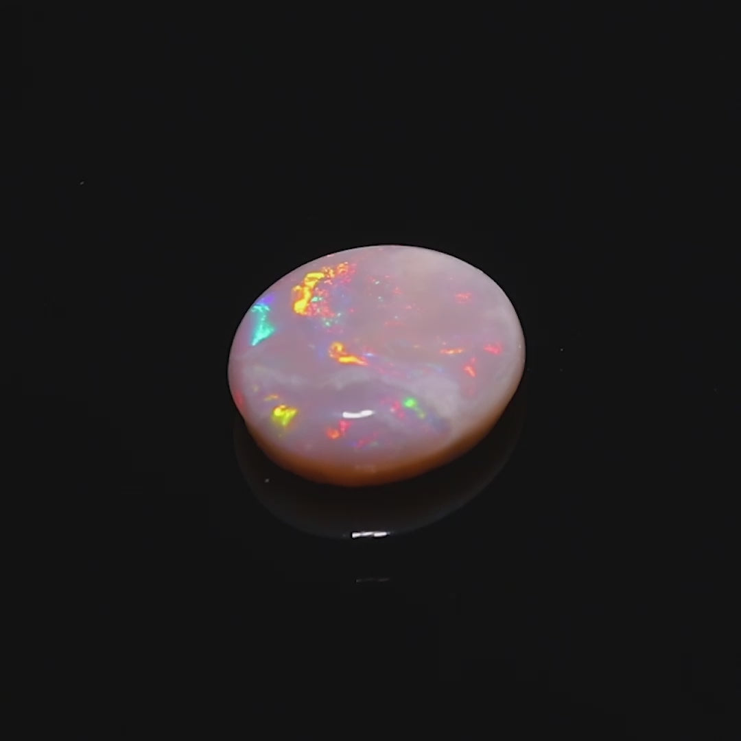Discover the extraordinary beauty of this 2.16 Ct Opal from the legendary Andamooka fields of Australia. With an enchanting oval cabochon cut, this opal boasts an exceptional play-of-color, featuring fiery red, vibrant green, and deep violet tones that shimmer beautifully across its polished surface.
