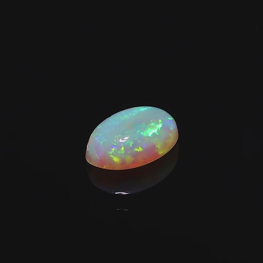 This 1.25 Ct Black Opal from the renowned Lightning Ridge showcases an extraordinary rainbow play of colors, including vivid flashes of green, yellow, violet, and fiery orange-red. Its rich, dynamic hues shimmer beautifully across the opal’s smooth, polished surface, creating a mesmerizing effect as it catches the light.