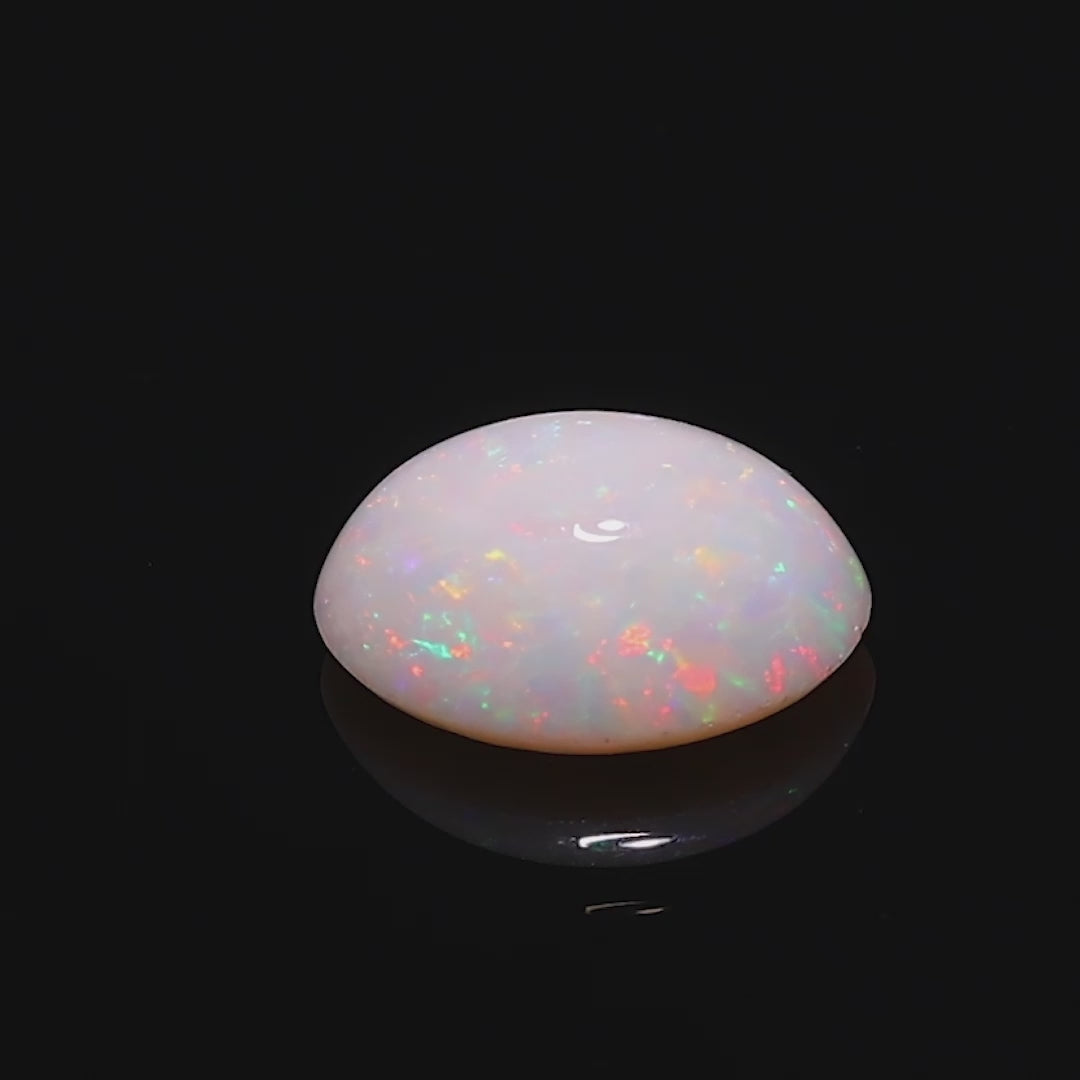 This 3.33 Ct Coober Pedy Opal is a breathtaking gemstone, showcasing a dazzling rainbow play of color that shifts beautifully under light. Its smooth, polished cabochon shape highlights vivid hues of red, orange, green, and blue, making it an exceptional piece for collectors and jewelry enthusiasts.