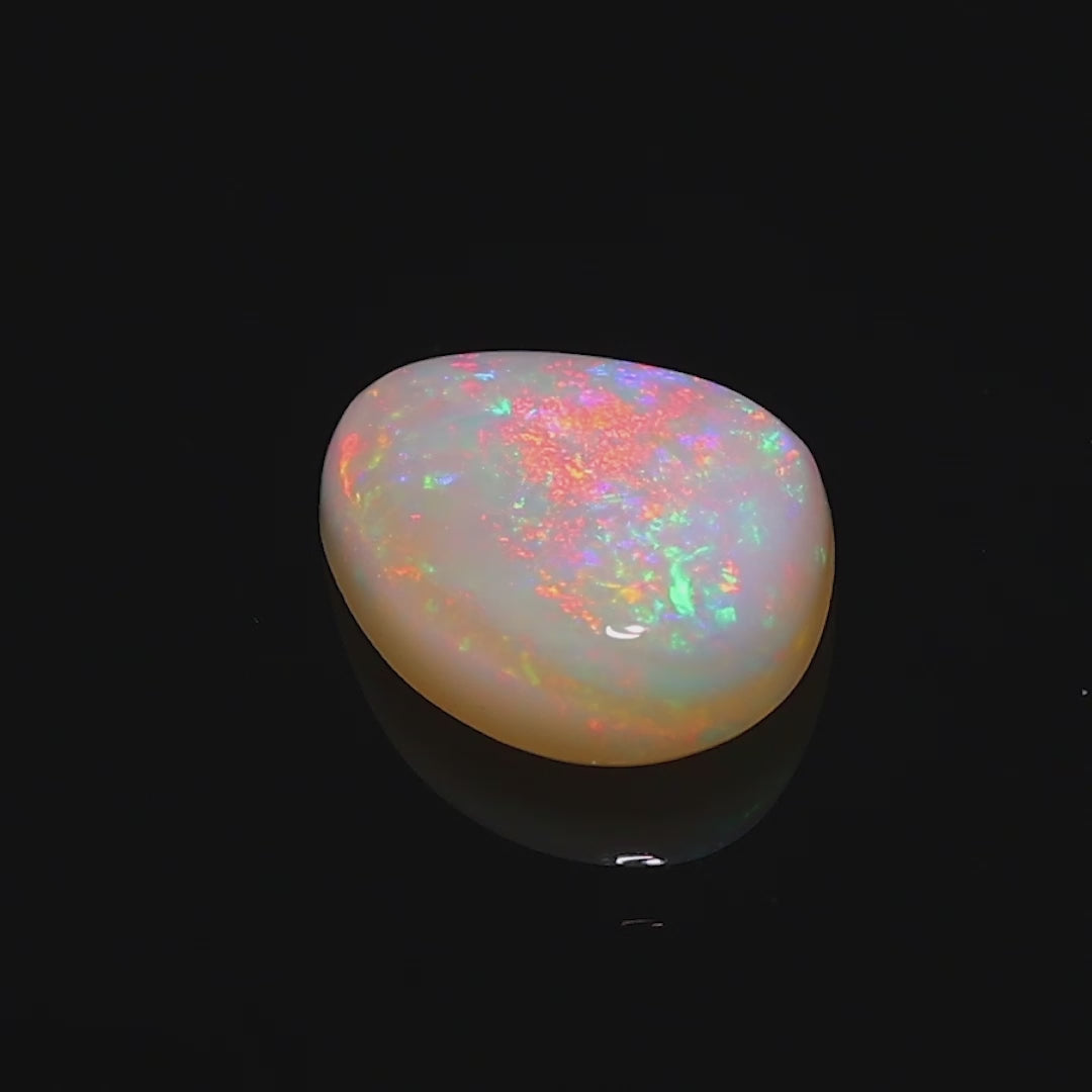 This 4.68-carat Andamooka Opal is a magnificent display of full-spectrum colors, with its vibrant reds, greens, blues, and violets dancing across the surface in a mesmerizing play-of-color. The high dome and smooth cabochon cut enhance its brilliance, making it an exceptional gemstone for opal lovers and collectors alike.