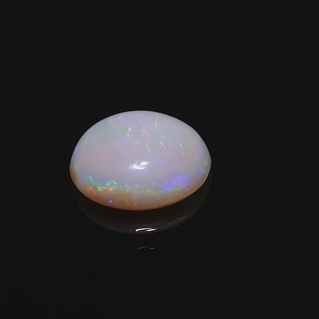 This stunning 3.16-carat White Opal hails from Coober Pedy, Australia's renowned opal mining region. Its smooth, milky-white body exudes a soft brilliance, highlighted by a captivating rainbow play-of-color with vivid flashes of green, blue, and orange.