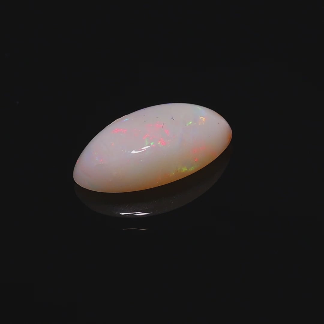 This mesmerizing 4.25-carat White Opal comes from Coober Pedy, one of Australia's most iconic opal fields. It features a milky white body tone enriched with a vivid rainbow play-of-color, displaying flashes of red, green, and orange that shift with the light.