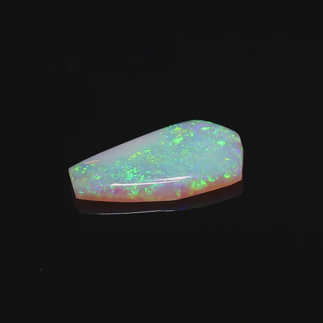 This exquisite 2.79-carat Black Opal hails from the renowned Lightning Ridge in Australia, celebrated for producing some of the world's finest opals. The stone features a dark base that amplifies a stunning play-of-color, with vibrant flashes of red, orange, yellow, and green dancing across its surface.
