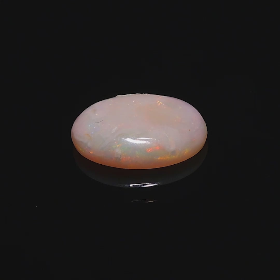 This stunning 2.57-carat Milky Opal hails from the world-famous Coober Pedy opal fields in Australia, celebrated for their bright, translucent opals. The gem boasts a soft, milky white body color with flashes of vivid red, creating a mesmerizing and elegant play-of-color.