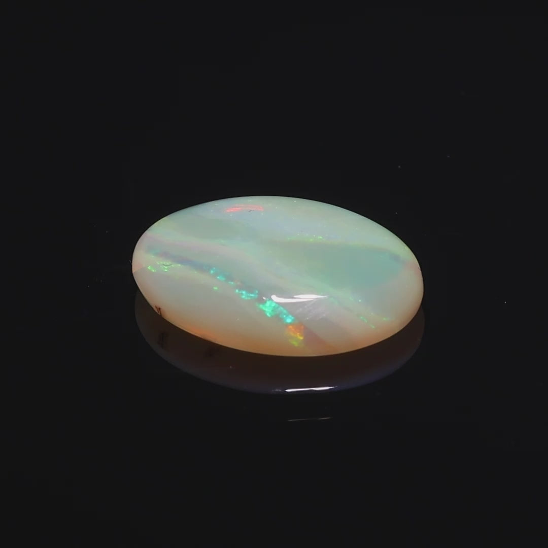 This spectacular 3.69-carat black opal from Lightning Ridge features a vivid play-of-color with flashes of red, orange, yellow, green, and violet dancing across its dark base. Renowned for its rarity and unparalleled brilliance, this opal is a true gem from Australia’s premier Lightning Ridge mines. Its vibrant hues and striking contrast make it a perfect choice for high-end, bespoke jewelry designs. Whether for a collector or as the centerpiece of a custom creation, this opal is a symbol of luxury and natural beauty.
