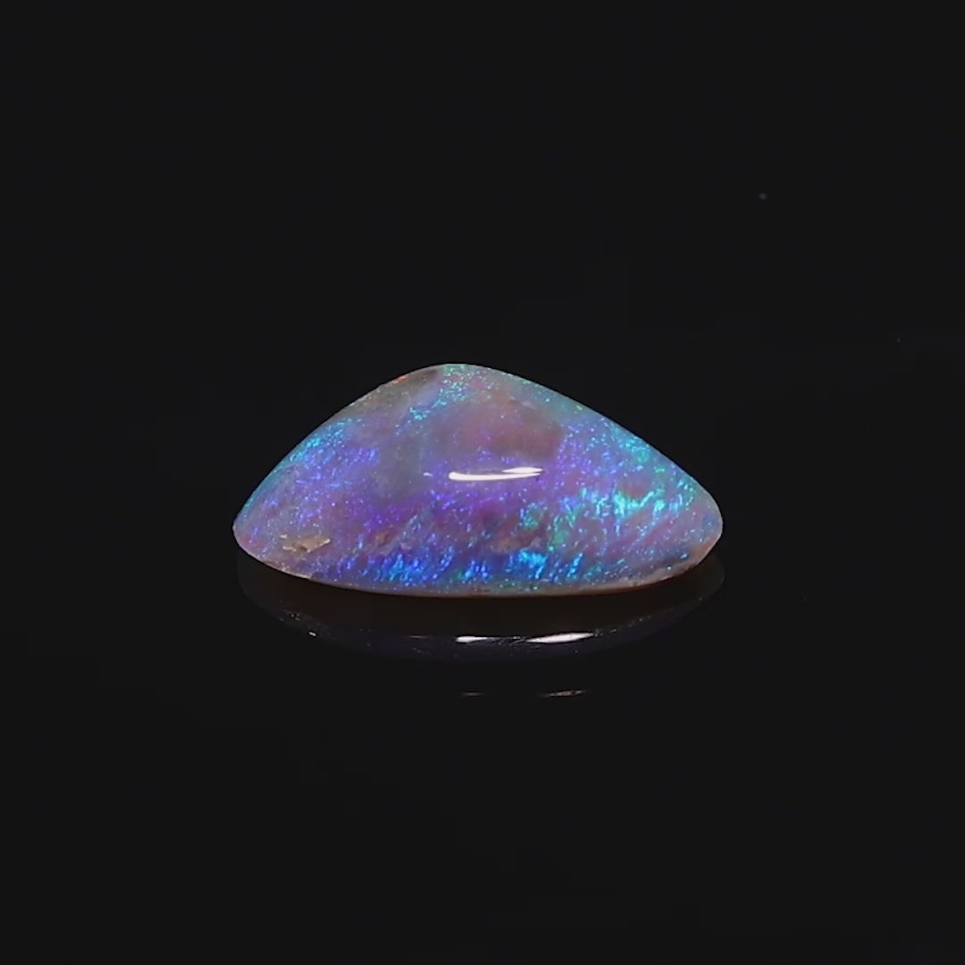 The opal's distinct dome-shaped cut and vibrant brilliance make it an exquisite choice for crafting elegant jewelry pieces. Lightning Ridge's black opals are celebrated for their rarity and beauty, and this gem is no exception, offering a perfect balance of depth and radiance.