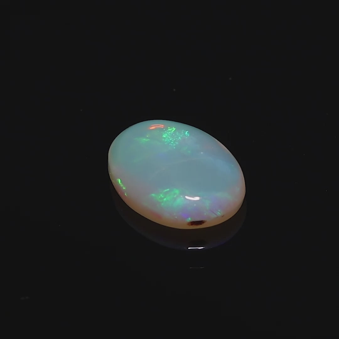 This exquisite 2.44-carat black opal from Lightning Ridge displays a captivating play-of-color, featuring a spectrum of vibrant rainbow hues. Its polished cabochon surface enhances the luminous greens, blues, and violets, creating a dynamic and enchanting visual appeal.