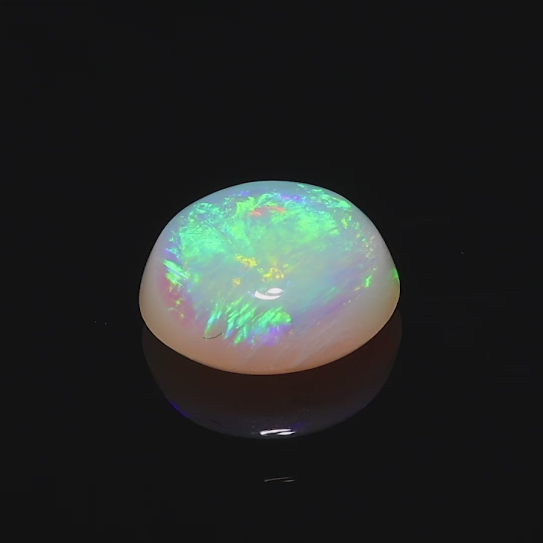 Its smooth, polished dome enhances the opal’s brilliance, making it an ideal choice for bespoke jewelry. This gem’s dynamic display and unique character ensure it will be cherished as a statement piece or a collector’s treasure.