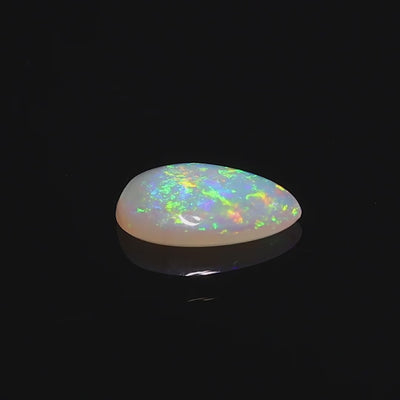 This 1.06-carat opal from Australia radiates a vibrant rainbow play-of-color, showcasing a dazzling array of greens, blues, yellows, and flashes of orange and purple. The opal's polished cabochon cut enhances its brilliance, making it an eye-catching gemstone for jewelry or a prized addition to any collection.