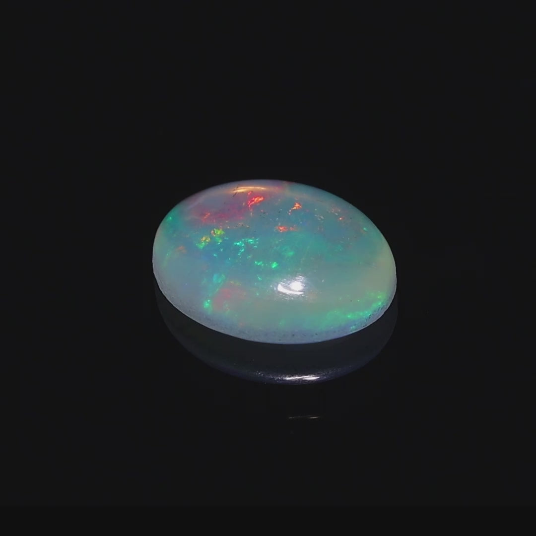 This 1.52-carat oval opal from Lightning Ridge, Australia, is a breathtaking example of crystal opal brilliance. Its clear base allows a vibrant play-of-color to radiate, featuring vivid flashes of red, orange, and green across its surface.