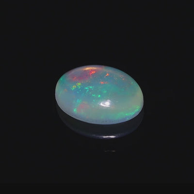 The oval cut maximizes the gem's color display, making it perfect for custom jewelry pieces such as rings or pendants. With its warm, fiery hues complemented by cooler greens, this opal captures the essence of Australia's renowned opal fields, offering a timeless and versatile addition to any collection.