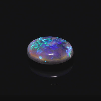 This captivating 1.42-carat black opal from Lightning Ridge, Australia, features a striking play-of-color dominated by vibrant shades of blue, green, and violet. The opal’s natural dark base enhances the intensity of its hues, creating a mesmerizing contrast that makes it a standout gemstone.