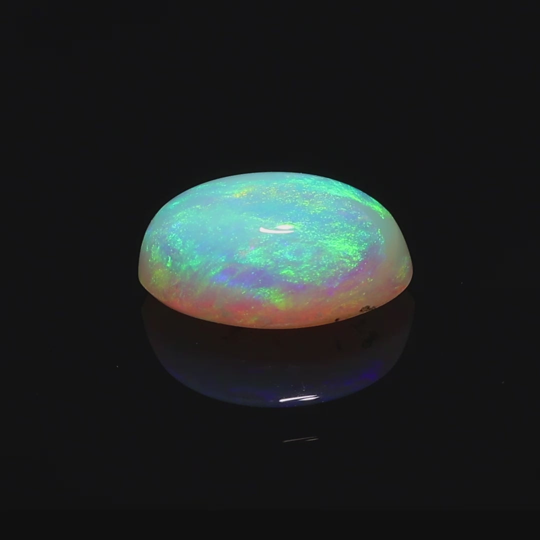 This striking 1.68-carat oval-cut black opal originates from the renowned Lightning Ridge, Australia. Showcasing a vivid play-of-color with flashes of red, orange, yellow, and green, this gemstone exudes a fiery brilliance that contrasts beautifully with its dark base tone.