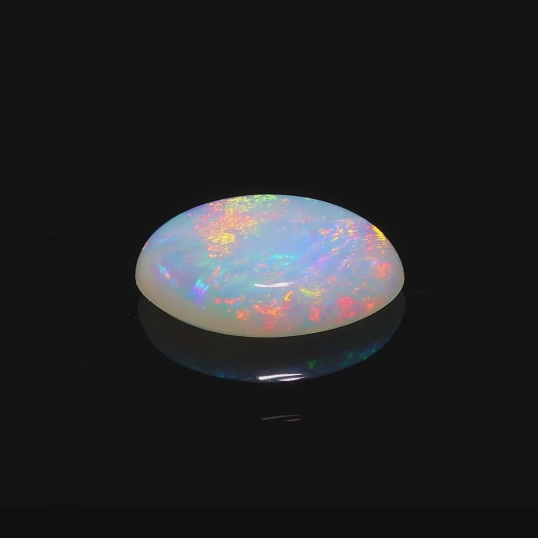 This radiant 1.16-carat oval-cut opal hails from the prestigious Lightning Ridge, Australia. Featuring a vibrant rainbow play-of-color, the gemstone is illuminated with flashes of red, yellow, blue, and green hues that shimmer beautifully against its pristine polished surface.