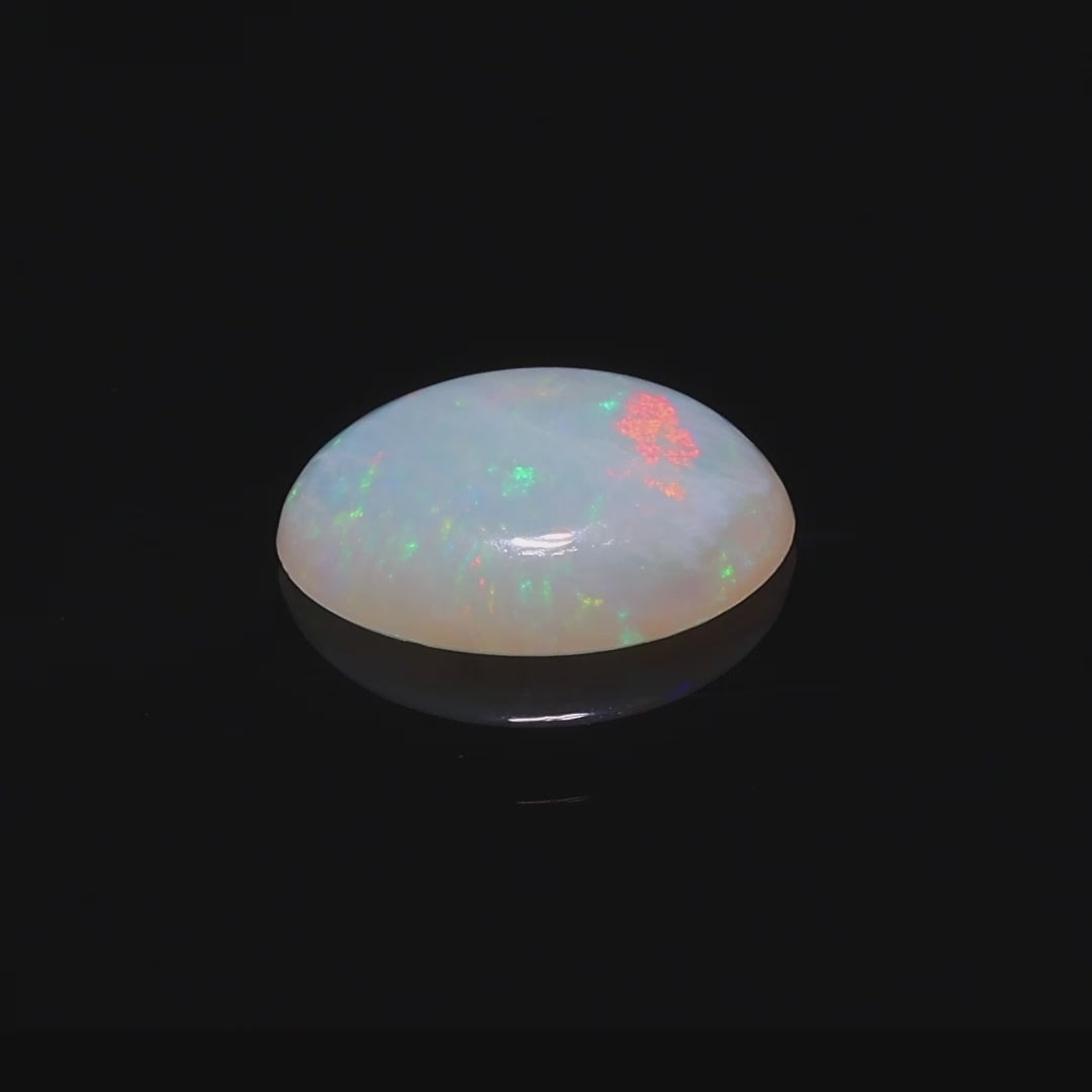 The opalโs soft white body tone provides the perfect canvas for the vibrant hues to dance, creating a visual spectacle that is both timeless and elegant. Its perfectly domed cabochon cut enhances the gemstoneโs natural brilliance, making it ideal for creating standout jewelry pieces. Whether set in a pendant, ring, or other bespoke design, this opal is sure to become a cherished keepsake. Representing love, hope, and creativity, this gem is perfect for collectors or those seeking a meaningful, rare gift to treasure forever.