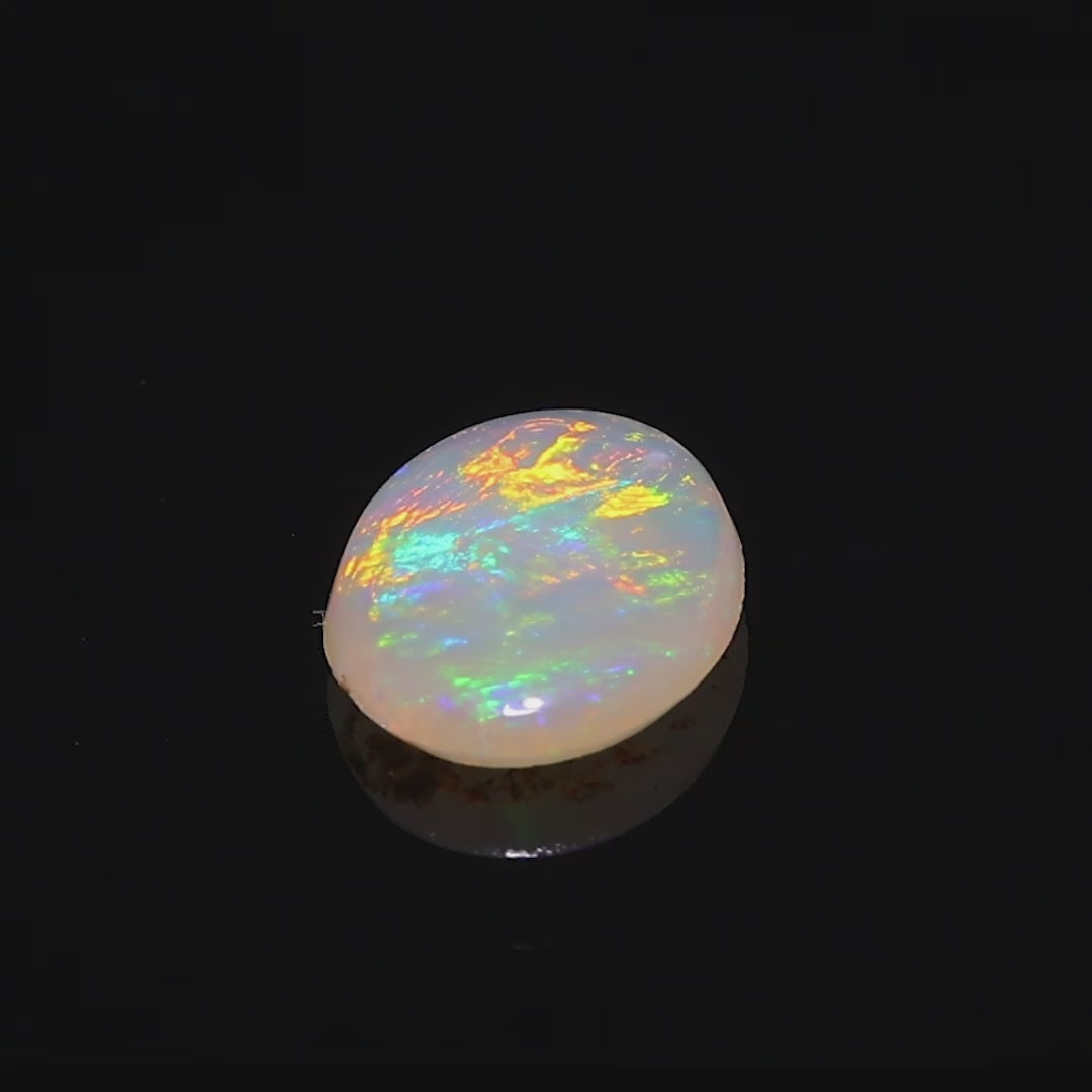 The polished oval shape enhances the opalโs natural brilliance, making it a versatile gemstone suitable for bespoke jewelry creations. Whether viewed under natural or artificial light, this opal mesmerizes with its dynamic hues, a true testament to nature's artistry.