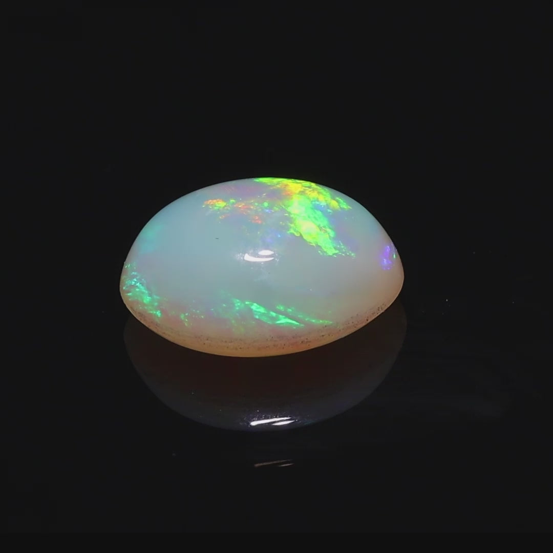 This 2.05 Ct. opal from Andamooka is a mesmerizing gem that epitomizes the magic of Australia's opal fields. Its substantial cabochon form reveals a kaleidoscope of colors, with radiant greens, fiery reds, and flashes of blue and pink that shimmer as light dances across its surface. The high dome adds depth to its vibrant play-of-color, making it an ideal centerpiece for statement jewelry.
