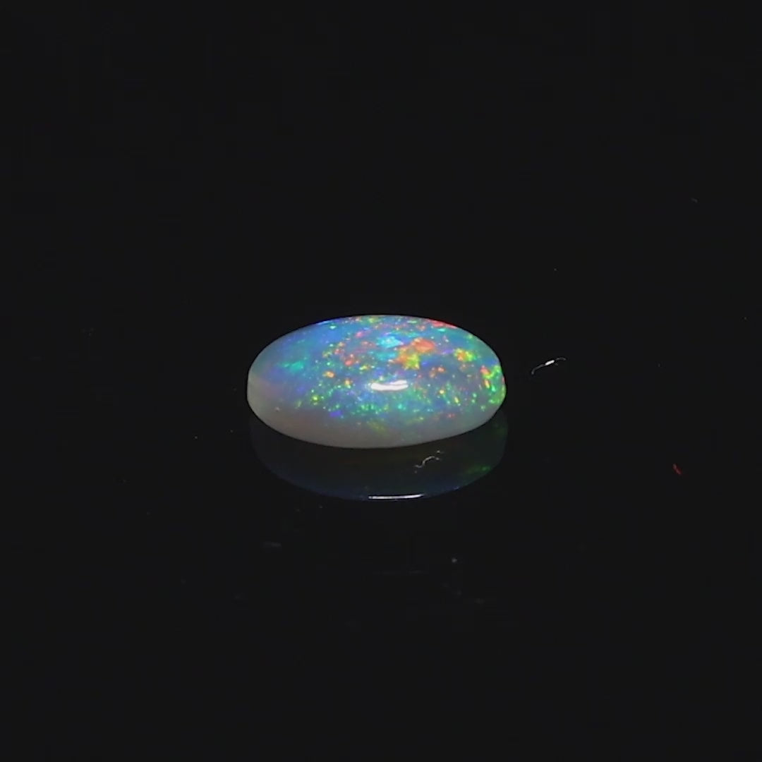 The opal's compact size is perfect for intricate jewelry designs, such as earrings or a delicate ring. Its fiery hues and deep black base make it a rare treasure, ideal for anyone seeking a unique and elegant gemstone.