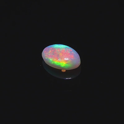 This captivating 0.19 Ct. black opal hails from the renowned Lightning Ridge in Australia. Showcasing an exquisite play-of-color, this gem radiates vibrant hues of red, orange, green, and blue, creating a fiery yet balanced spectrum that makes it truly unique.
