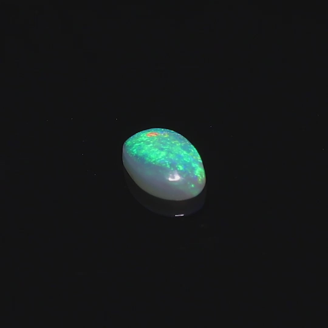 Experience the enchanting beauty of this 1.6 Ct. black opal from Lightning Ridge, Australia. Displaying a captivating play-of-color in vibrant green and blue hues, this opal radiates a serene yet dynamic energy.