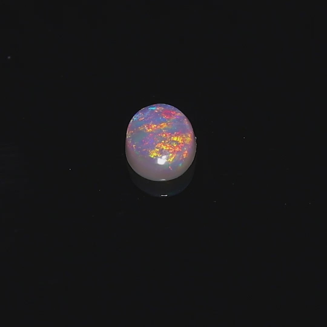 With its radiant play-of-color and polished oval shape, this opal is perfect for a bespoke jewelry piece or as a standout gem in your collection.