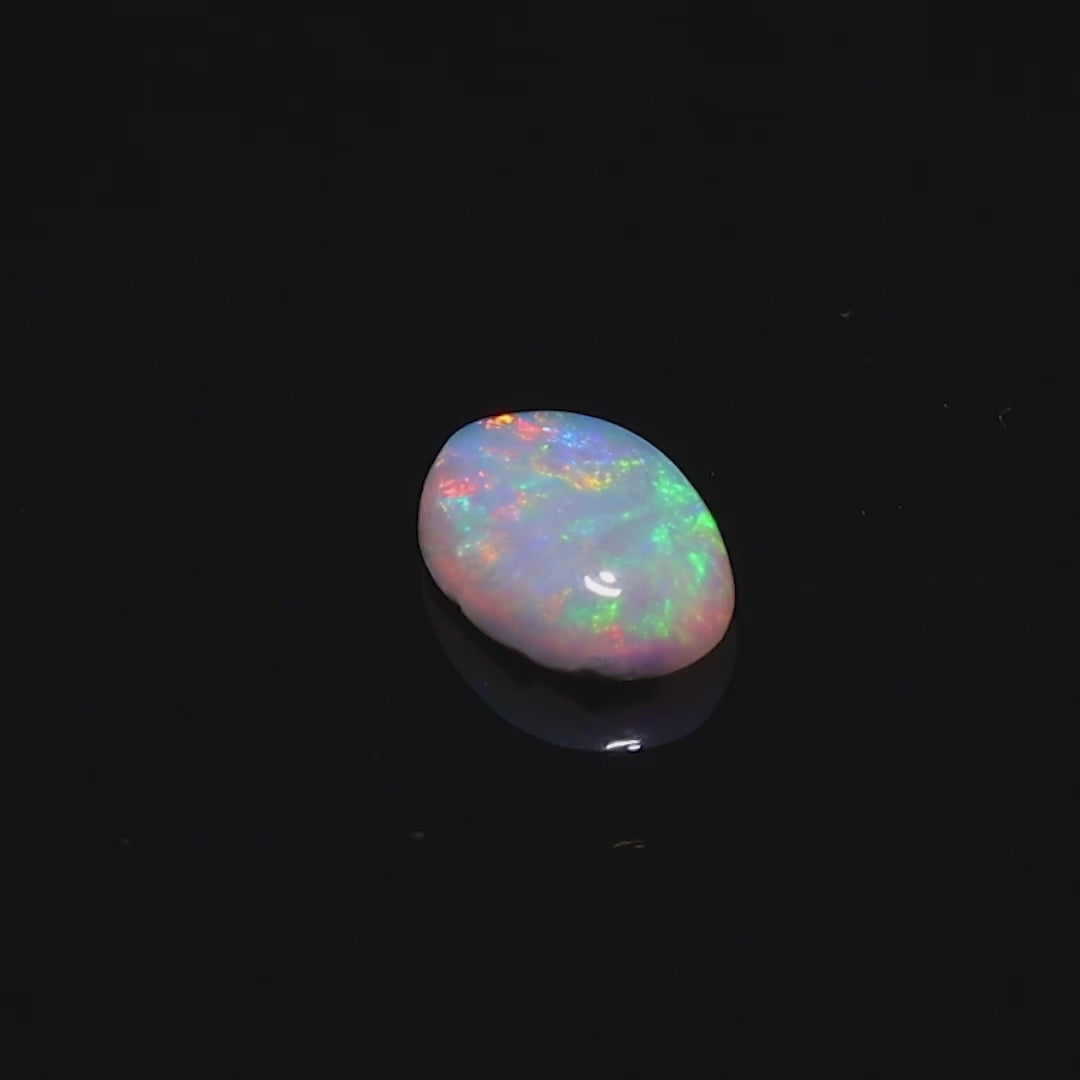 This captivating 0.3-carat black opal from the renowned Lightning Ridge in Australia radiates a spectacular array of colors, including vivid red, green, blue, and orange. Its play-of-color creates a mesmerizing visual effect, making it a sought-after gemstone for collectors and jewelry enthusiasts. The opal's freeform shape enhances its natural charm and highlights the unique vibrancy that black opals are celebrated for. Perfect for crafting elegant and unique jewelry pieces, this opal embodies the timeless allure of Australian gemstones.