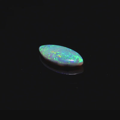 Experience the mesmerizing charm of this 0.34-carat black opal from Lightning Ridge, Australia. Its vibrant interplay of green and blue hues creates a serene and enchanting display reminiscent of ocean waves. The elongated, smooth cut adds to its elegance, making it a versatile choice for custom jewelry or a collector’s showcase. Sourced from the prestigious Lightning Ridge, this opal guarantees exceptional quality and natural beauty.