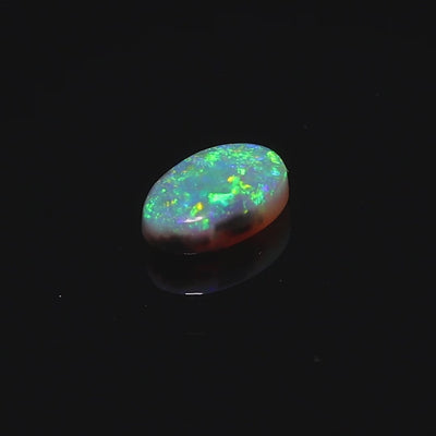 This 0.35-carat black opal from Lightning Ridge, Australia, showcases a captivating play of colors with vivid green, blue, red, and orange hues. The opal's natural black backing enhances its striking colors, creating a mesmerizing visual effect. Its oval shape and polished finish make it an exquisite choice for a unique jewelry piece, celebrating the enchanting beauty of Australia's opal fields.