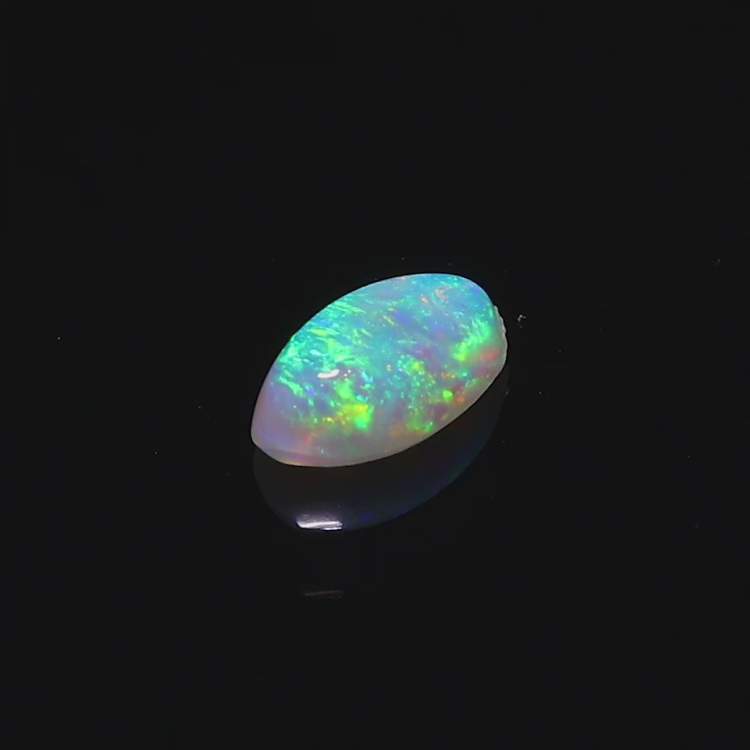Presenting a mesmerizing 0.36-carat black opal from the renowned Lightning Ridge in Australia. This opal radiates a vibrant play of red, green, and blue hues that dance across its polished surface, creating an enchanting visual effect. The depth and fire of this gemstone make it a stunning centerpiece for fine jewelry or an exceptional addition to a gemstone collection, reflecting the natural beauty and rarity of Lightning Ridge opals.