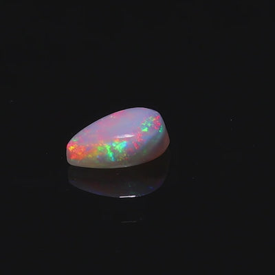Experience the captivating allure of this 0.35-carat black opal from Lightning Ridge, Australia. Bursting with a stunning play-of-color, this gem radiates vivid shades of red, orange, green, and blue. Its unique shape and fiery brilliance make it an exceptional choice for custom jewelry or as a centerpiece in any gemstone collection. This opal embodies the magic and rarity that Lightning Ridge is renowned for.