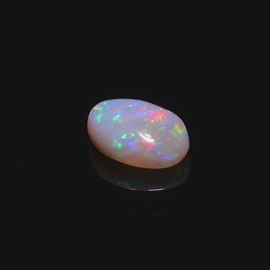 This exquisite 0.48-carat black opal from Lightning Ridge, Australia, is a masterpiece of natural beauty. Showcasing an entrancing play-of-color with vivid flashes of red, blue, and green, this gemstone radiates unparalleled brilliance. Its smooth, polished surface highlights the opal's mesmerizing hues, making it a perfect choice for bespoke jewelry or a treasured addition to a collector's portfolio. With its vibrant colors and rare origin, this opal embodies the charm and elegance synonymous with Lightning Ridge.
