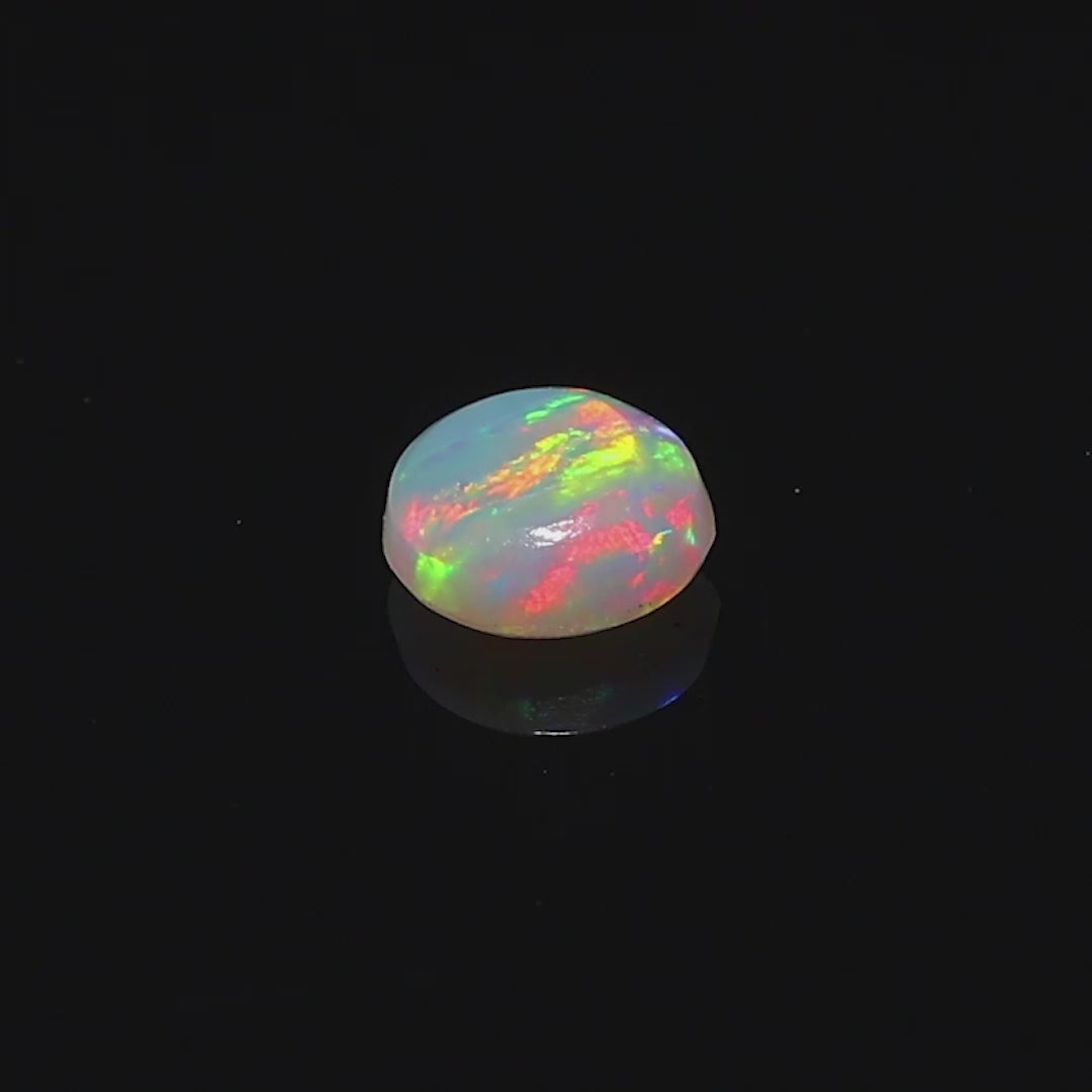This 0.30-carat black opal hails from Lightning Ridge, Australia, a region celebrated for its vibrant opal gemstones. Displaying an extraordinary play-of-color, this opal features vivid flashes of red, green, blue, and orange, shifting beautifully as the light hits. The captivating hues against the dark background make it a standout piece, ideal for creating a striking pendant, elegant ring, or custom jewelry design. Its compact yet radiant form makes it a versatile and highly sought-after gem, perfect for collectors or those seeking a timeless addition to their fine jewelry collection.
