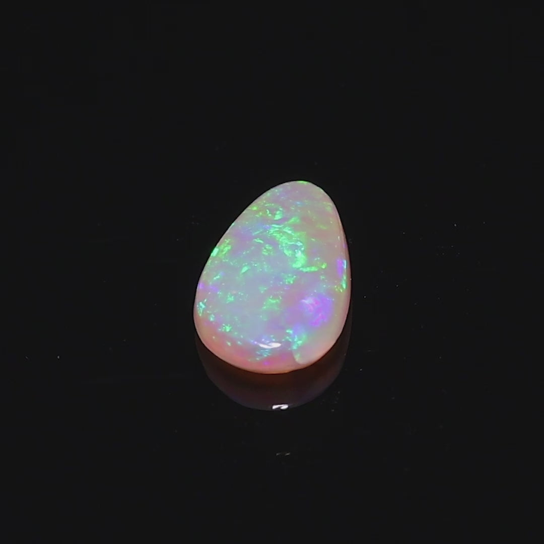 This 0.5-carat black opal from Lightning Ridge, Australia, is a magnificent display of nature’s artistry. Its mesmerizing play-of-color features captivating blue and green hues that shimmer beautifully with every movement. The teardrop shape enhances its elegant appeal, while the opal's polished surface amplifies its vibrant brilliance. This gemstone's rarity and striking beauty make it an excellent choice for bespoke jewelry creations or a cherished addition to any gem collection. Whether set in a pendant or a ring, this opal exudes timeless sophistication and charm.