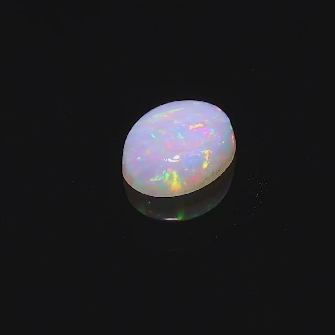 This exquisite 0.5-carat black opal hails from Lightning Ridge, Australia, renowned for its premium opals. Its luminous play-of-color features vibrant red and green hues that shift beautifully under different angles of light. The oval-shaped gem boasts a polished finish, enhancing its stunning vibrancy and captivating depth. Perfect for crafting a bespoke piece of jewelry or adding to a curated collection, this opal embodies timeless elegance and natural beauty. Whether adorning a ring or pendant, its vivid colors make it a standout treasure.